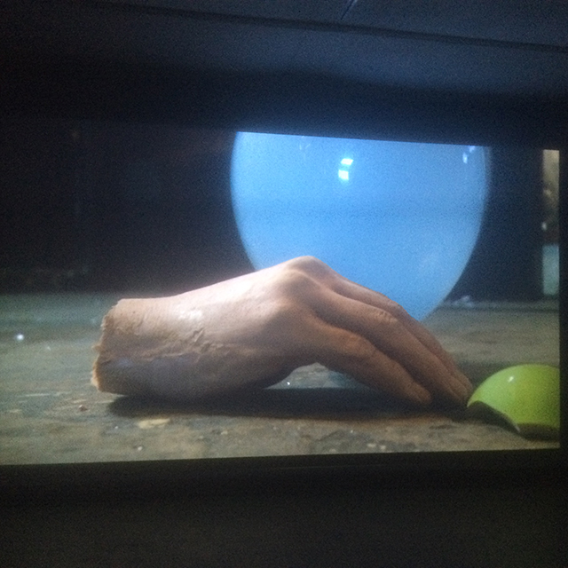 Guy Ben Ner at Sadie Coles with a lighthearted mimed film to the soundtrack of Spielberg’s War of the Worlds.