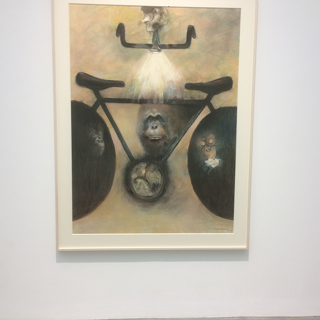Dorothea Tanning at Alison Jacques with the gorilla and bike used as symbols arrested evolution and contemplative travel.